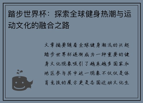 文章摘要的内容:萧山,作为世界杯的热议地,不仅仅是一场足球盛宴的举办地,更是全球足球文化交流与地方经济发展的重要节点。本文从多个角度深入探讨萧山如何通过世界杯激情盛宴,推动全球足球文化的传播与交流,同时促进地方经济的繁荣与发展。---1、世界足球文化的交流与传播萧山举办世界杯,不仅仅是一场体育赛事,...